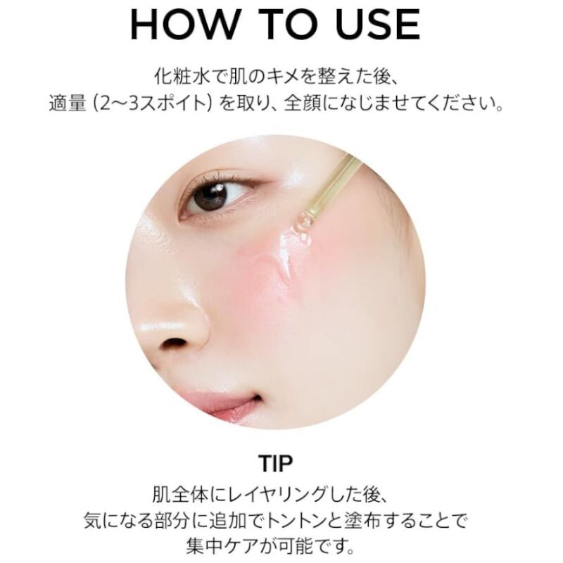 1. 清潔な肌に適量を取り、優しくなじませます。